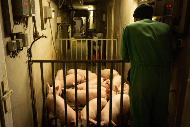 Un éleveur de porcs hors-sol vient acheter des porcelets.